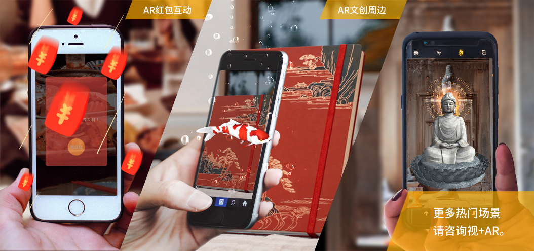 針對部分景區(qū)需要,視+AR提供具備手勢識別、姿態(tài)識別等強(qiáng)大能力的小 程序AR解決方案,基于小程序AR,景區(qū)可推出多樣化AR互動體驗(yàn),如AR 紅包、AR跳舞機(jī)等強(qiáng)互動體驗(yàn),豐富景區(qū)游玩體驗(yàn)。